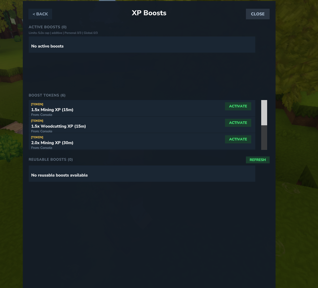 In addition to admin-awarded tokens, players can also earn physical boost token items through milestone rewards. These are consumable items that players hold and right-click to activate, working through the same boost system.